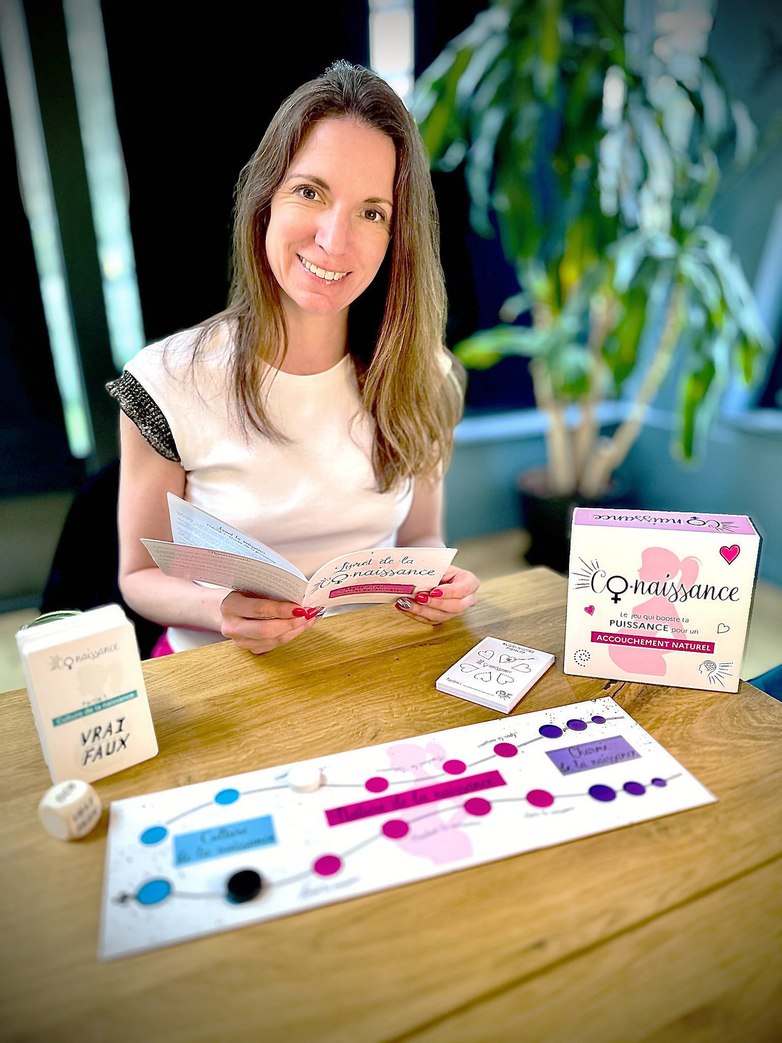 Co.naissance est vendu au prix de 34,90€. C’est un jeu de société 100% fabriqué en France, il contient le jeu et le livret de connaissances sur la naissance naturelle.